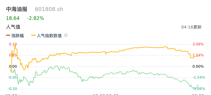 04月16日,中海油服收报18.64,股价涨幅-2.82%,成交金额2.79亿元,换手率0.50%。