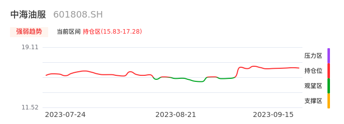 09月15日,中海油服收报16.72,股价涨幅0.36%,成交金额1.58亿元,换手率0.32%。