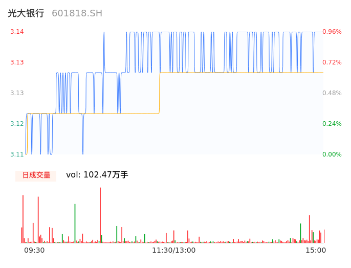 04月25日,光大银行收报3.14,股价涨幅0.96%,成交金额3.21亿元,换手率0.22%。