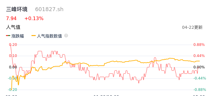 04月22日,三峰环境收报7.94,股价涨幅0.13%,成交金额5287.41万元,换手率0.40%。