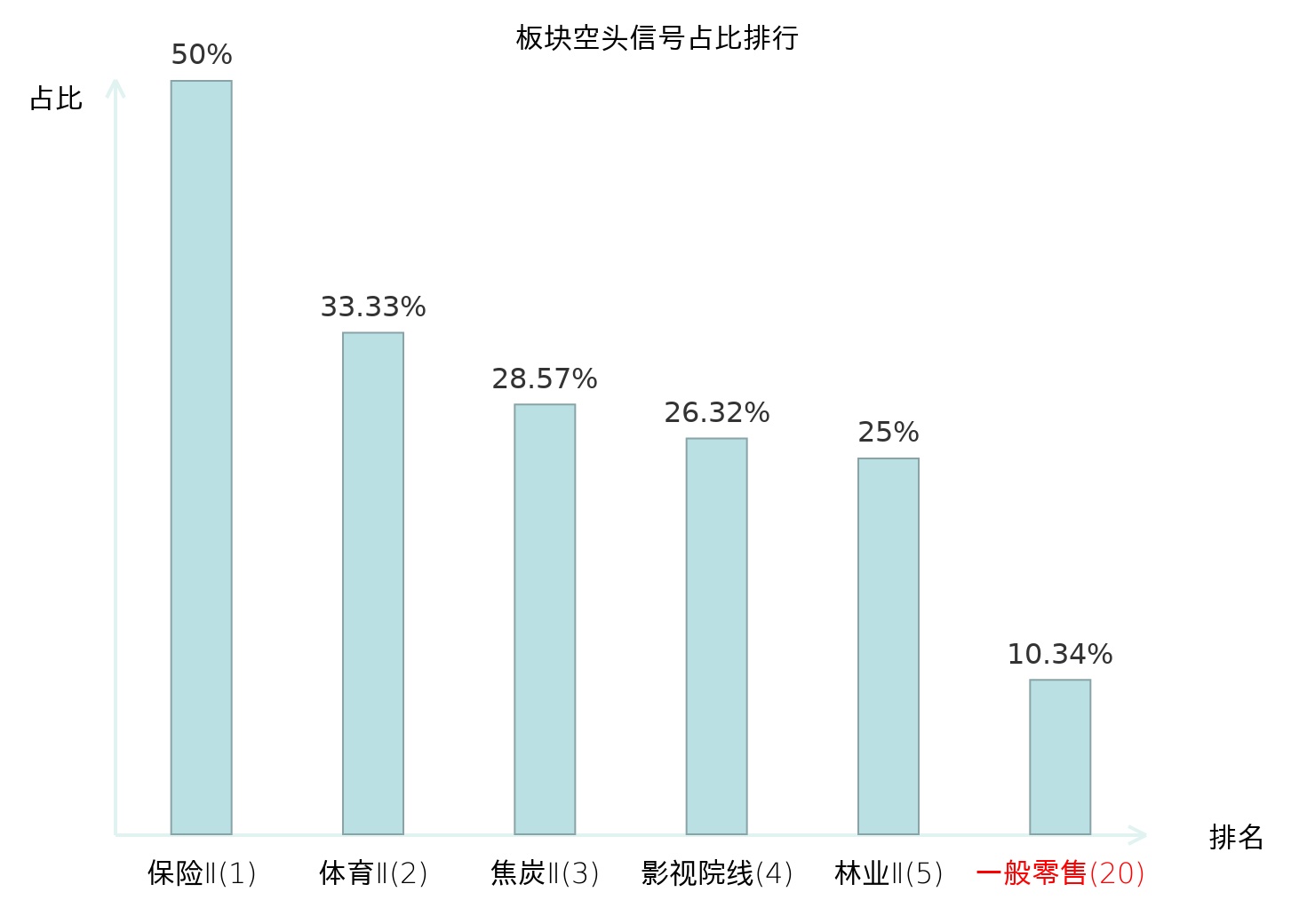 全市场所有行业板块中主力空头信号占比排名中,保险Ⅱ板块位居第一。装修建材板块名次提升最快,较昨日上升118位。