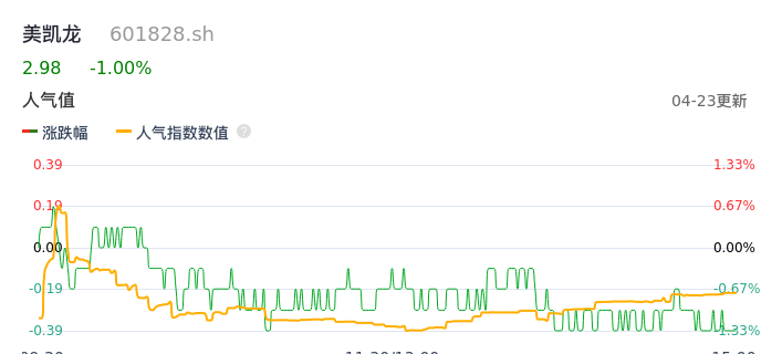 04月23日,美凯龙收报2.98,股价涨幅-1.00%,成交金额3595.30万元,换手率0.33%。