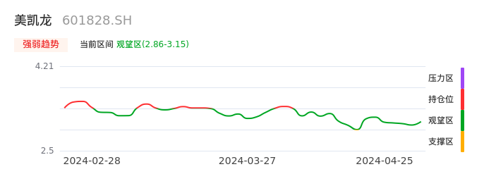 我们来看一下该股的九方特色指标强弱趋势的情况:美凯龙自04月08日从持仓区下穿到观望区。股价近期持续下跌后,短期出现止跌迹象。后续重点关注能否再次站上多空分界点:3.15元。如未能有效突破则可能进入新一轮空头行情。