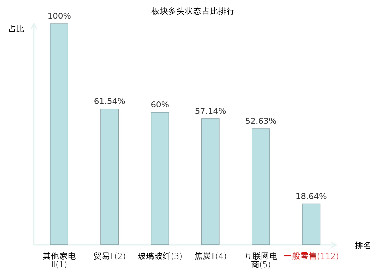全市场所有行业板块中主力多头状态占比排名中,其他家电Ⅱ板块位居第一。教育板块名次提升最快,较昨日上升50位。