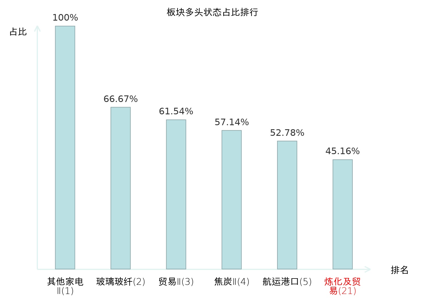 全市场所有行业板块中主力多头状态占比排名中,其他家电Ⅱ板块位居第一。影视院线板块名次提升最快,较昨日上升62位。