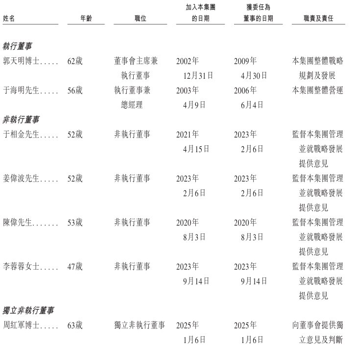 编纂时,董事会将由9名董事组成,包括2名执行董事、4名非执行董事及3名独立非执行董事。获选董事任期为3年并可重选连任,但须根据相关中国法律法规,独立非执行董事的累计任期不得超过6年。