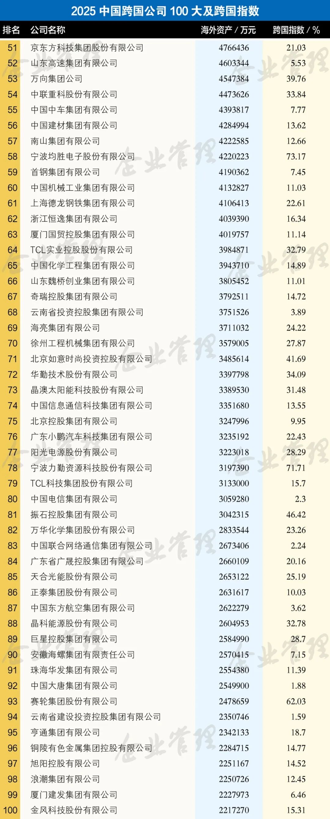 上证报中国证券网讯 9月15日,中国企业联合会、中国企业家协会发布2025中国跨国公司100大名单及跨国指数。中国石油天然气集团有限公司、腾讯控股有限公司、华为投资控股有限公司位列前三。