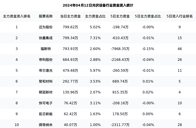 从主力资金流向来看,光伏设备行业今日主力资金流入34.99亿元,在所有申万二级行业中排名:22/131。