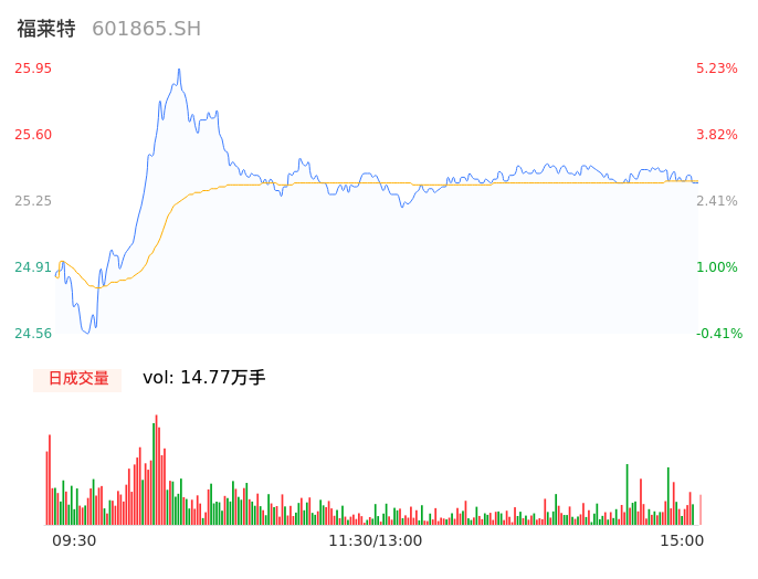 04月22日,福莱特收报25.36,股价涨幅2.84%,成交金额3.75亿元,换手率0.78%。