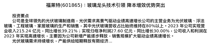 值得注意的是:2024年04月浙商证券的张雷/陈明雨/谢金翰/尹仕昕分析师,首次发布关于福莱特的研究报告,标题为:福莱特(601865):玻璃龙头技术引领 降本增效优势突出。