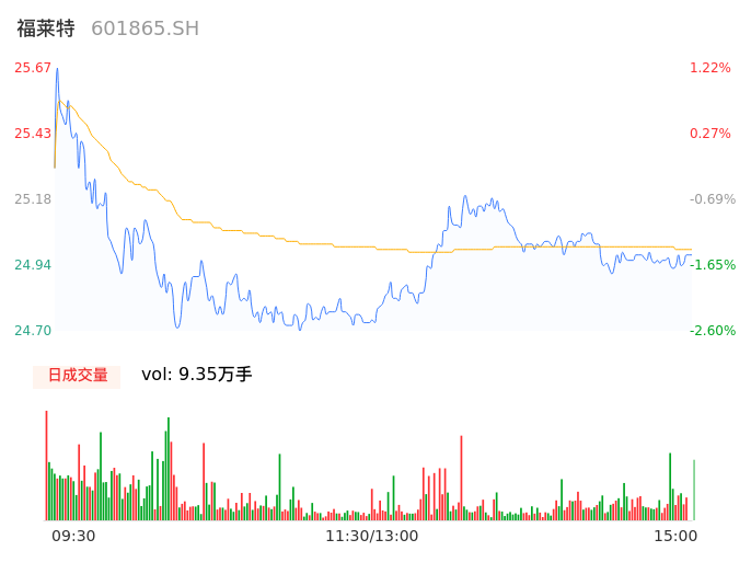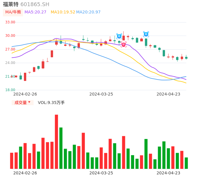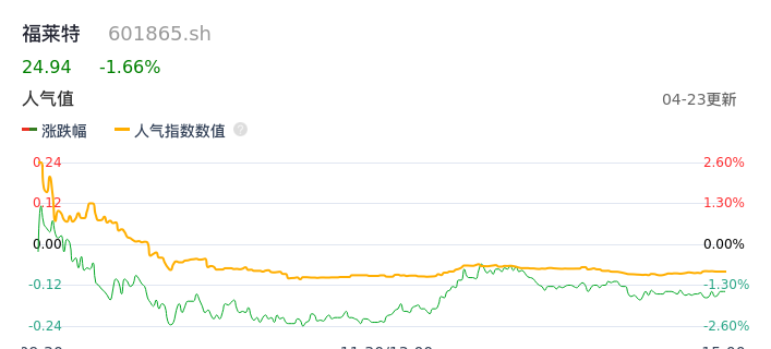 04月23日,福莱特收报24.94,股价涨幅-1.66%,成交金额2.34亿元,换手率0.49%。