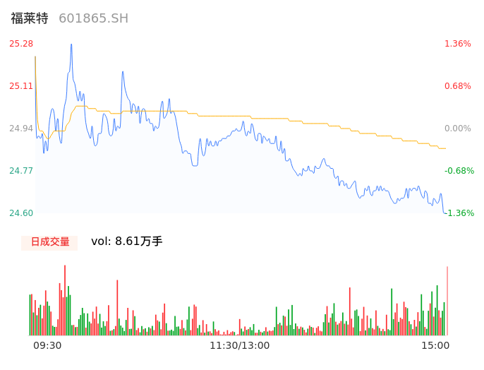 04月24日,福莱特收报24.61,股价涨幅-1.32%,成交金额2.14亿元,换手率0.45%。