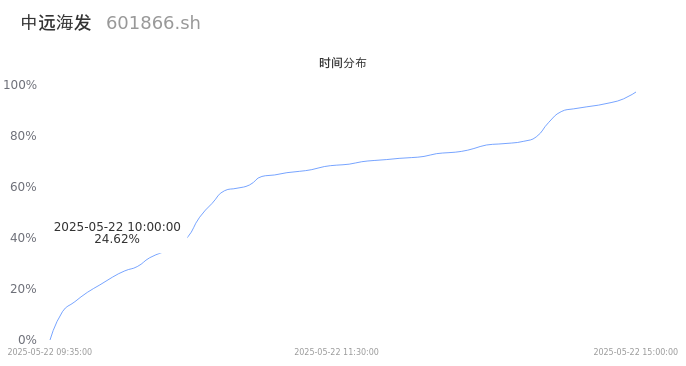 601866中远海发2025年05月22日成交209.76万手,成交金额5.21亿,相较昨日缩量38.99万手,换手率2.13%,成交清淡。
