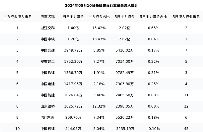 从主力资金流向来看,基础建设行业今日主力资金流入30.52亿元,在所有申万二级行业中排名:86/131。