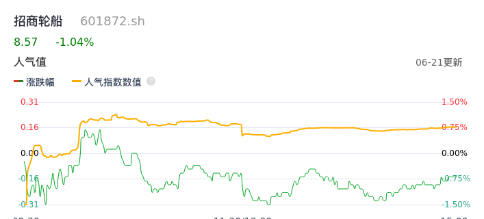 06月21日,招商轮船收报8.57,股价涨幅-1.04%,成交金额3.05亿,换手率0.43%。
