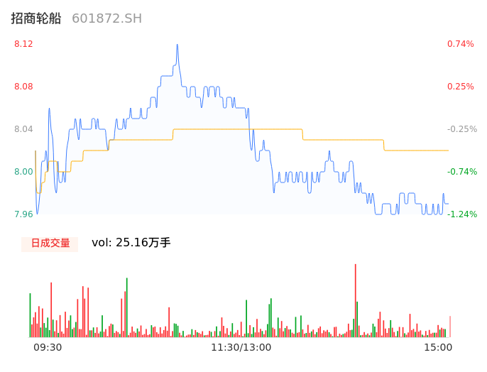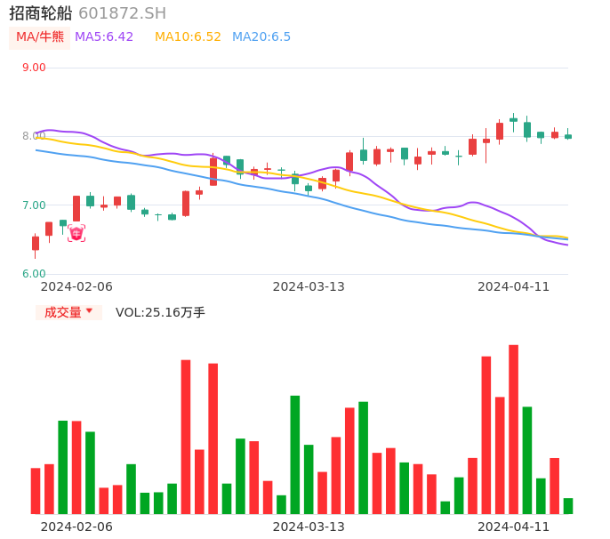 04月11日,招商轮船收报7.97,股价涨幅-1.12%,成交金额2.02亿元,换手率0.31%。