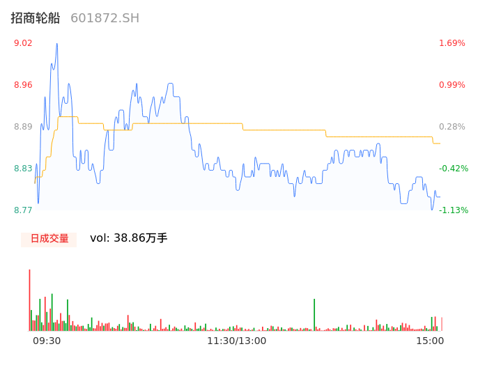 04月22日,招商轮船收报8.79,股价涨幅-0.90%,成交金额3.45亿元,换手率0.48%。