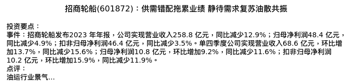 值得注意的是:2024年04月华福证券的陈照林分析师,首次发布关于招商轮船的研究报告,标题为:招商轮船(601872):供需错配拖累业绩 静待需求复苏油散共振。