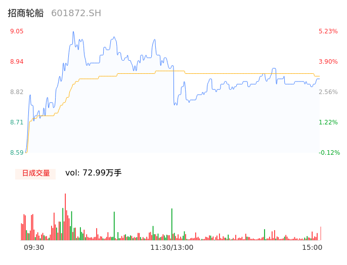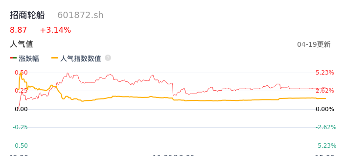 04月19日,招商轮船收报8.87,股价涨幅3.14%,成交金额6.48亿元,换手率0.90%。