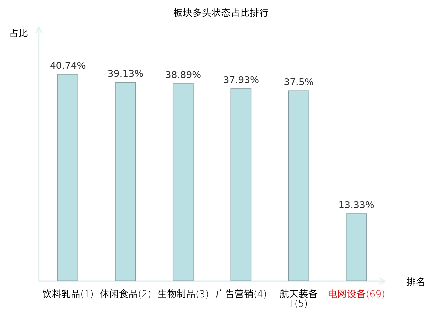 全市场所有行业板块中主力多头状态占比排名中,饮料乳品板块位居第一。国有大型银行Ⅱ板块名次提升最快,较昨日上升71位。