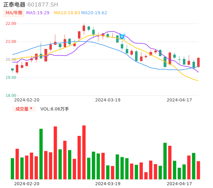 04月17日,正泰电器收报20.09,股价涨幅2.92%,成交金额1.60亿元,换手率0.37%。
