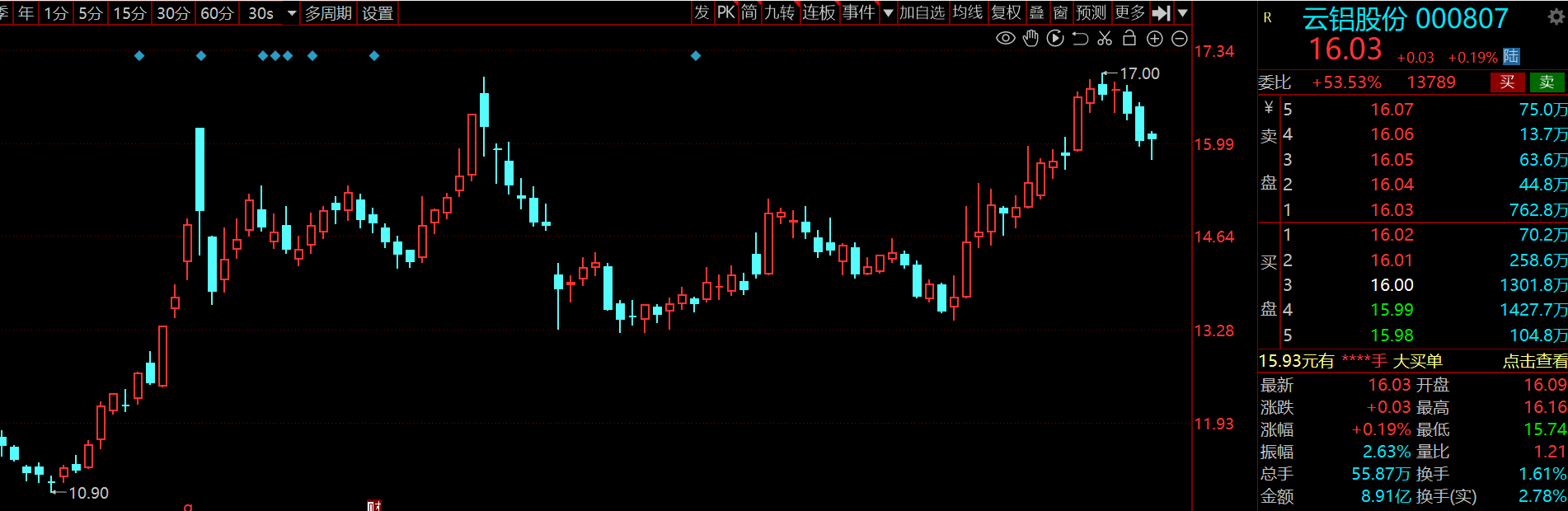 今天和大家讲解一只绿色低碳铝企龙头-云铝股份。