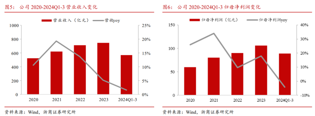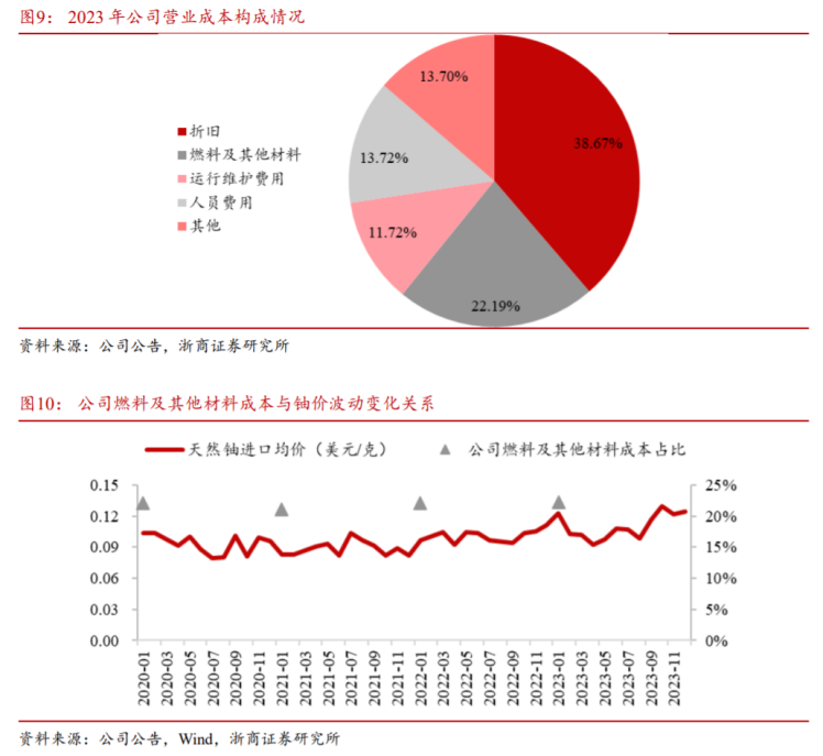 公司系中核集团下唯一核电运营平台,公司主要经营范围包含核能、风能、太阳能等清洁能源项目及配套设施的开发、投资、建设、运营与管理,其中主营的核电业务2023年营收占比近85%,为公司基本盘,且风光新能源业务发展也较为迅速。公司控股股东中国核工业集团是国内的专营核燃料生产商、供应商和服务商,拥有完整的核科技工业体系,有望为公司赋能。近年来公司经营业绩保持稳健,且公司控成本降费用双驱并行,带动盈利能力有所提升。