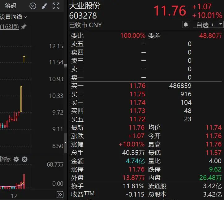 同日晚间,涉及商业航天概念的大业股份也发布股票交易异常波动公告。12月8日、9日,大业股份连续收获2个涨停板,截至9日收盘报11.76元。