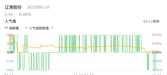 04月12日,辽港股份收报1.41,股价涨幅0.00%,成交金额6657.64万元,换手率0.25%。