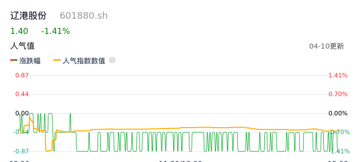 04月10日,辽港股份收报1.40,股价涨幅-1.41%,成交金额7723.77万元,换手率0.29%。