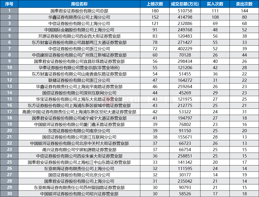 ③从营业部席位看,多个知名游资常用席位近2周以来频频登榜。