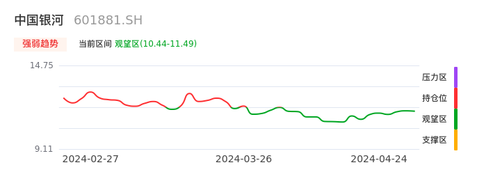 我们来看一下该股的九方特色指标强弱趋势的情况:中国银河自03月27日从持仓区下穿到观望区,股价近期持续走弱。短期已经进入空头行情,且下跌动能仍未衰竭。建议继续谨慎观望。
