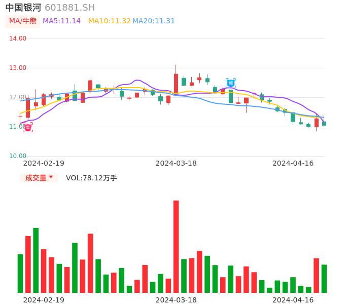 04月16日,中国银河收报11.04,股价涨幅-2.04%,成交金额8.78亿元,换手率1.08%。