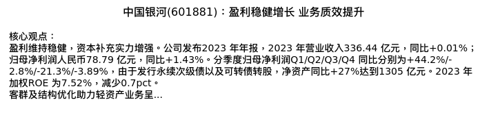 值得注意的是:2024年04月广发证券的陈福分析师,首次发布关于中国银河的研究报告,标题为:中国银河(601881):盈利稳健增长 业务质效提升。