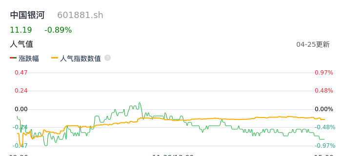 04月25日,中国银河收报11.19,股价涨幅-0.89%,成交金额3.47亿元,换手率0.43%。