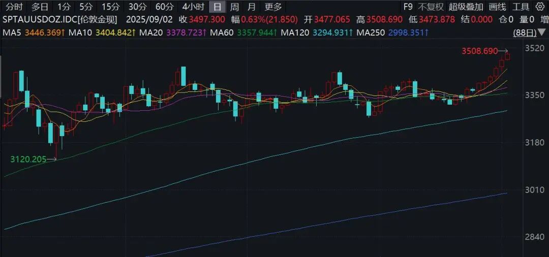 9月2日早间,现货黄金价格突破3500美元/盎司,创下历史新高。年初至今,金价累计涨幅超33%。