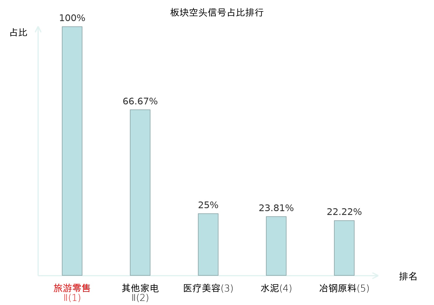 全市场所有行业板块中主力空头信号占比排名中,旅游零售Ⅱ板块位居第一。电机Ⅱ板块名次提升最快,较昨日上升113位。