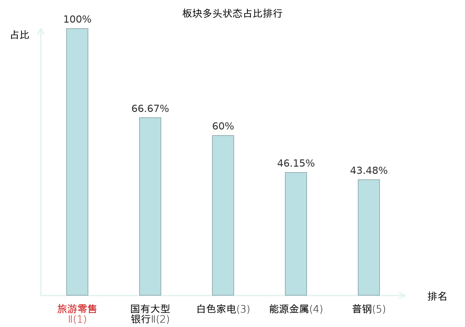 全市场所有行业板块中主力多头状态占比排名中,旅游零售Ⅱ板块位居第一。光学光电子板块名次提升最快,较昨日上升59位。