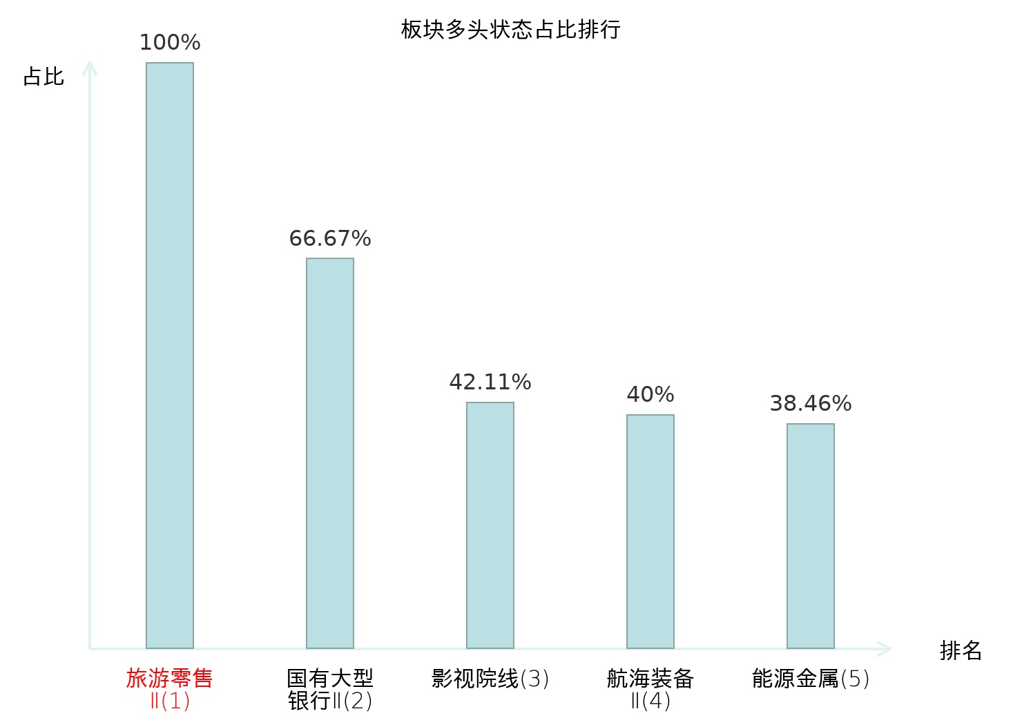全市场所有行业板块中主力多头状态占比排名中,旅游零售Ⅱ板块位居第一。林业Ⅱ板块名次提升最快,较昨日上升102位。