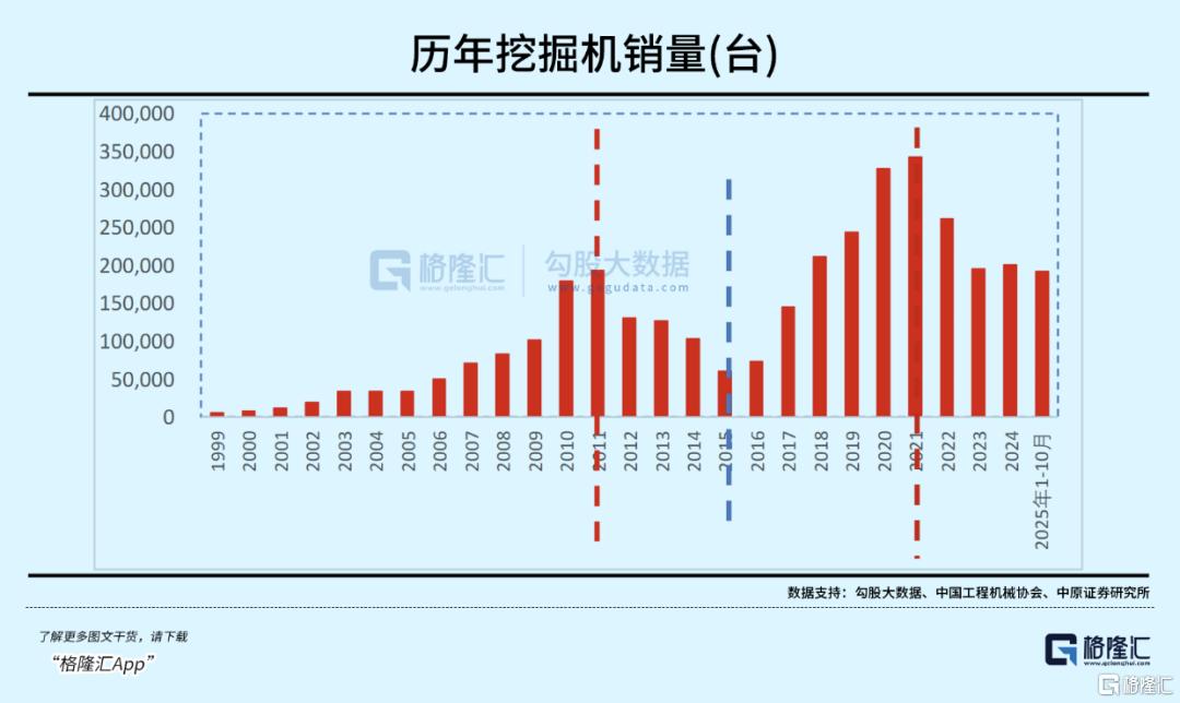 参考工程机械设备8-10年的使用寿命(按9年测算),上一轮2016-2021年上行周期投放的设备,自2025年起将逐步进入更新周期,该轮更新需求预计延续至2030年,标志着工程机械行业新一轮更新周期正式开启