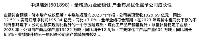 值得注意的是:2024年04月东方证券的万里扬/刘洋/周迪分析师,首次发布关于中煤能源的研究报告,标题为:中煤能源(601898):量增助力业绩稳健 产业布局优化赋予公司成长性。