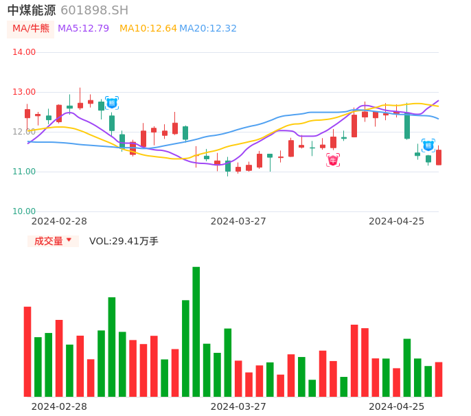 值得注意的是:2024年04月信达证券的左前明/李春驰分析师,首次发布关于中煤能源的研究报告,标题为:中煤能源(601898):量稳价减盈利下降 各产业仍具成长空间。