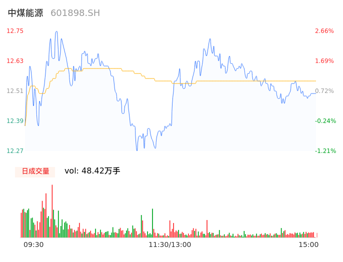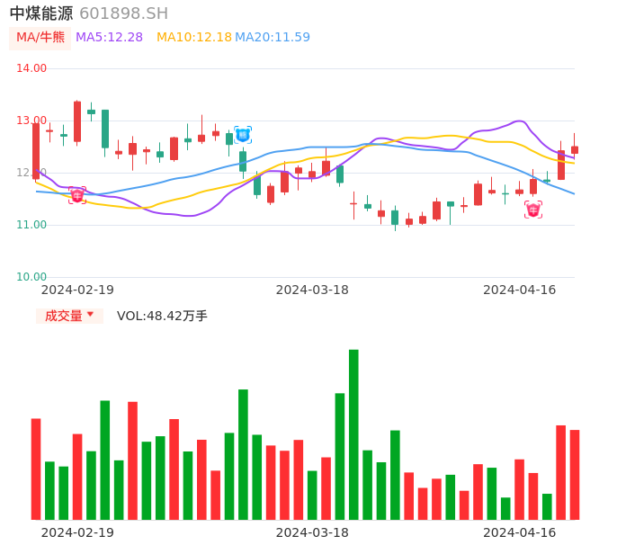 04月16日,中煤能源收报12.50,股价涨幅0.64%,成交金额6.08亿元,换手率0.53%。