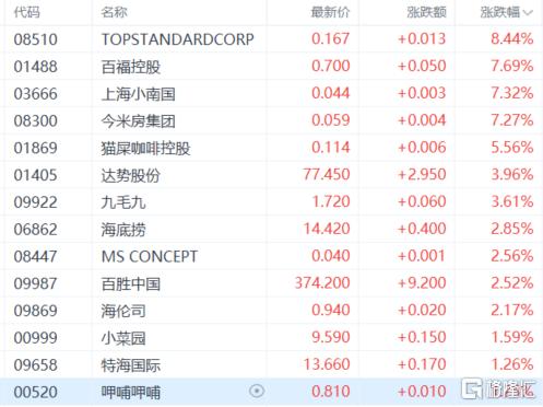 另一方面,药品板块下挫,海普瑞跌超7%;环保、铁路及公路、国内零售股、烟草、油气生产商等少数板块下跌。