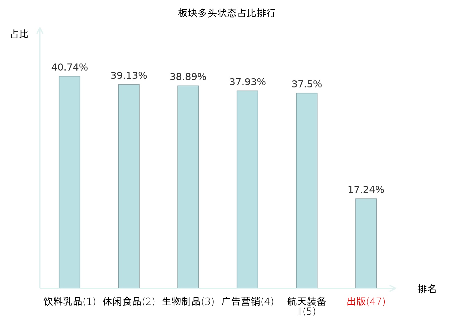 全市场所有行业板块中主力多头状态占比排名中,饮料乳品板块位居第一。国有大型银行Ⅱ板块名次提升最快,较昨日上升71位。