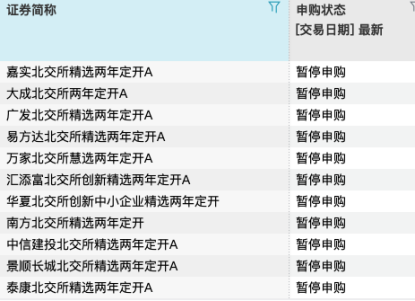 由于年内北交所市场行情持续火热,资金加速涌入,基金公司已多次出手控制旗下主题基金规模。截至目前,全市场11只北交所主动型基金已全数暂停申购,处于“只出不进”的状态。