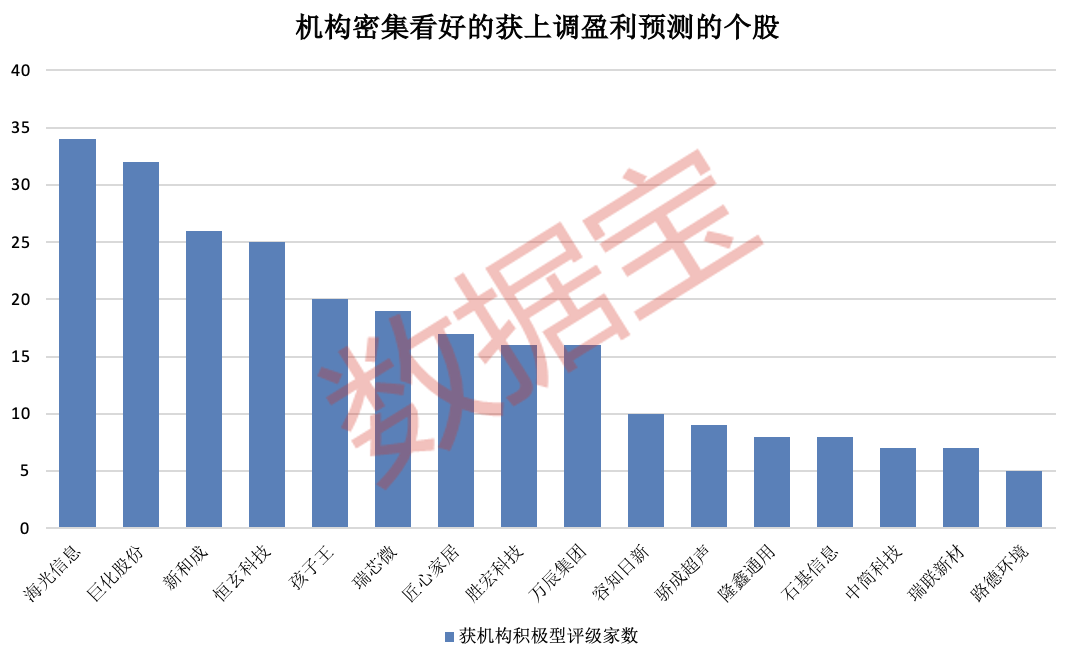 盈利预测获上调的个股,往往受到机构集中看好。据数据宝统计,上述18只个股中,有16股均获5家以上机构积极型评级(含“买入”和“增持”评级)。