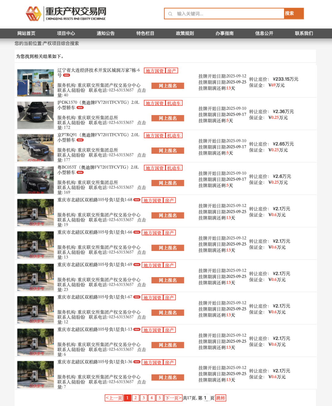 重庆产权交易网显示,9月10日至12日西南证券新挂牌逾70个资产转让项目。