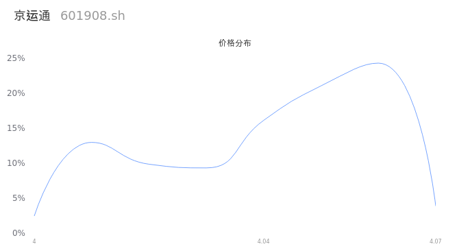 然后我们来看下当日成交的价格分布。经过分析发现,该股票当日成交价格波动低于10个最小波动价位,由于可以参考的样本量非常少,价格分布分析的结果不具有指导意义,下图仅供参考。