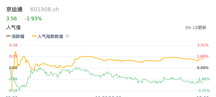04月18日,京运通收报3.56,股价涨幅-1.93%,成交金额8567.40万元,换手率0.99%。